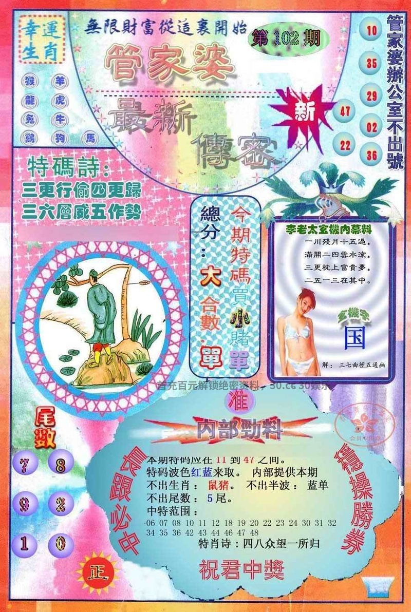 106期 | 鼠 | 绿双 | 0头 | 5尾 | 开:猪43 |